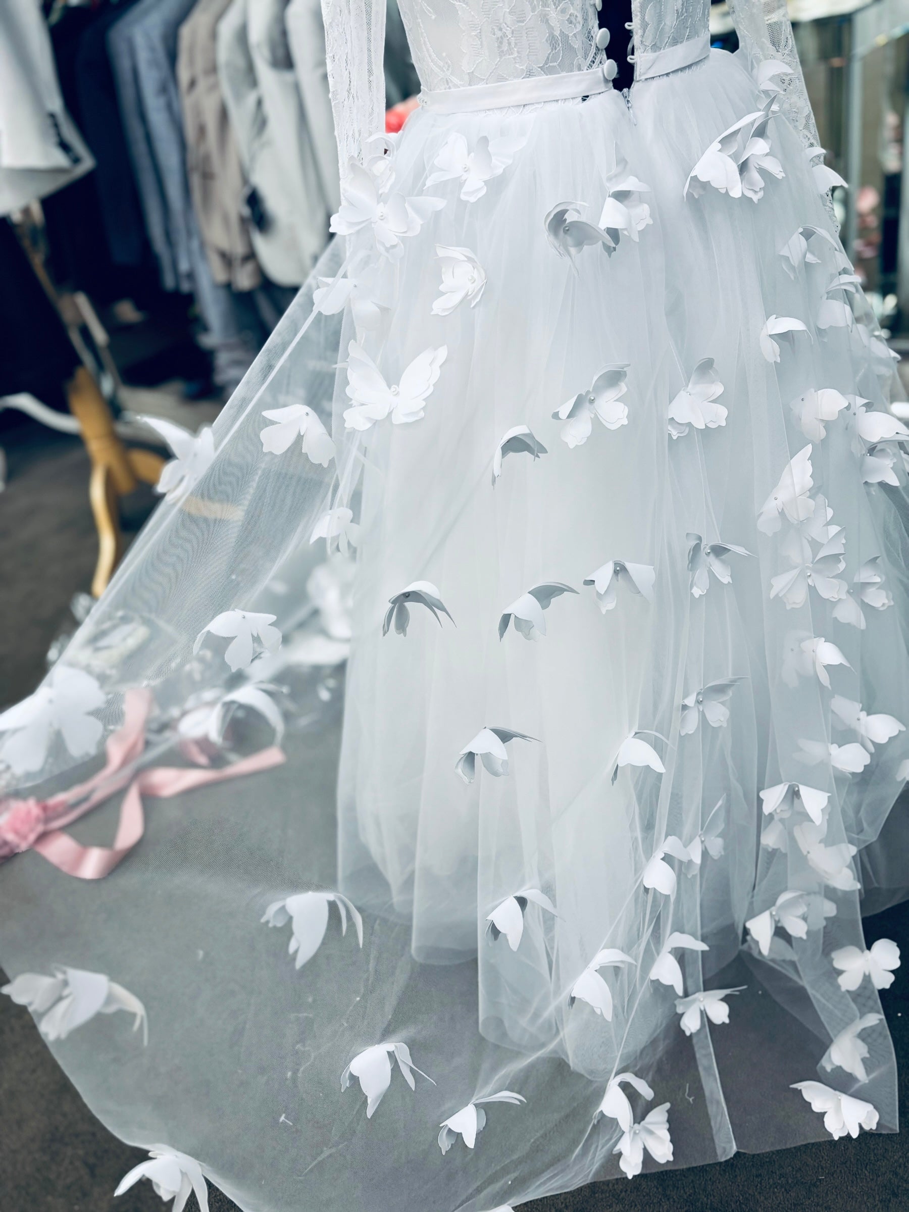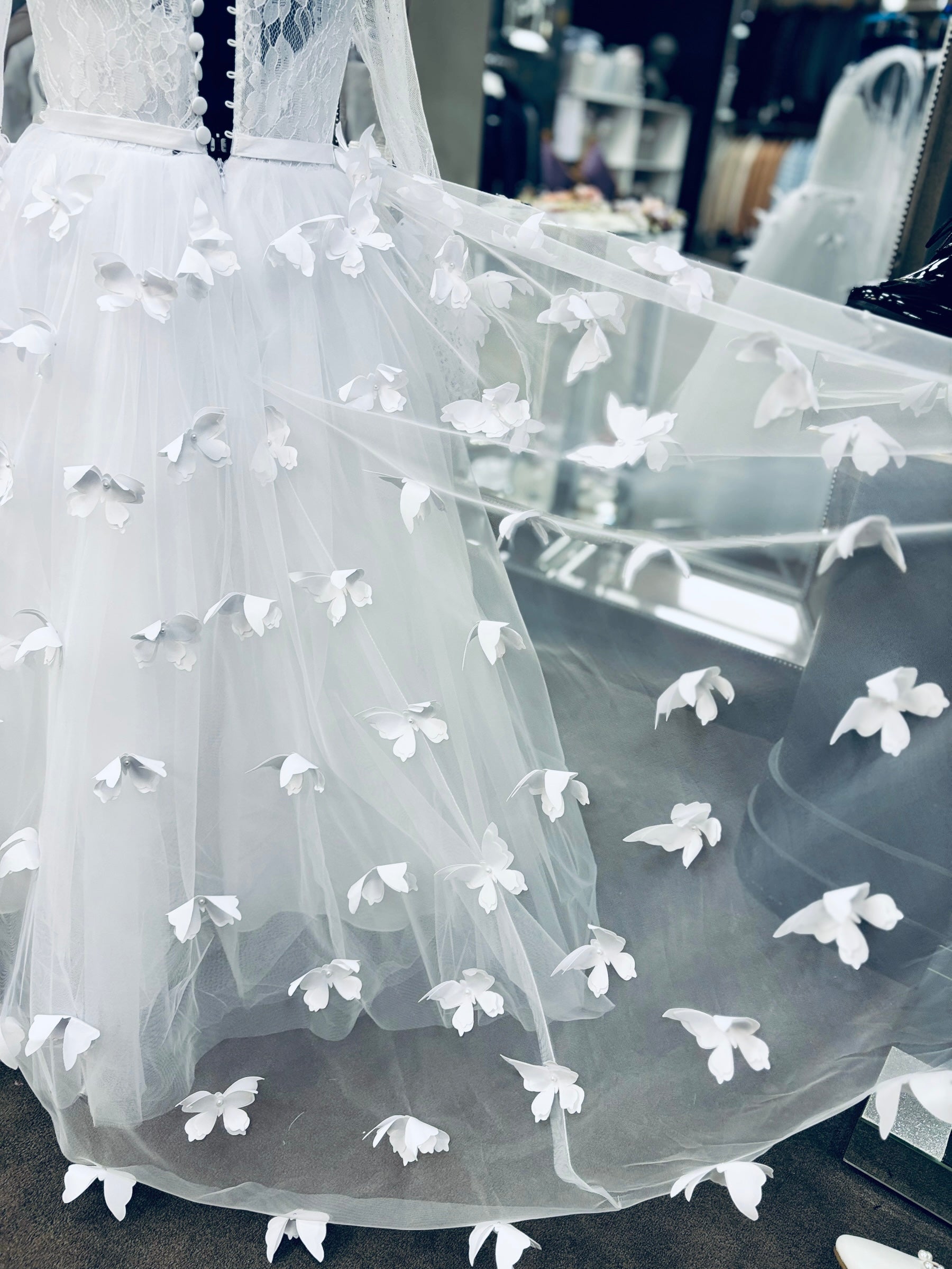 We are a by-appointment boutique. Once you choose your dream dress, it will be exclusively made to order in your size.