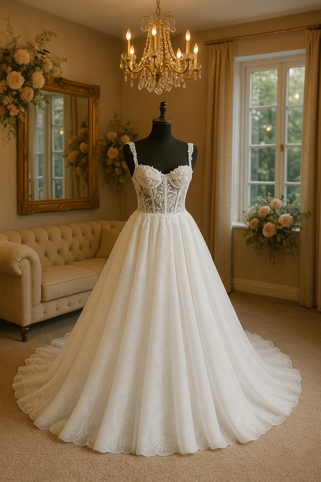 Ophelia is a timeless dream brought to life. With a structured corset bodice adorned in